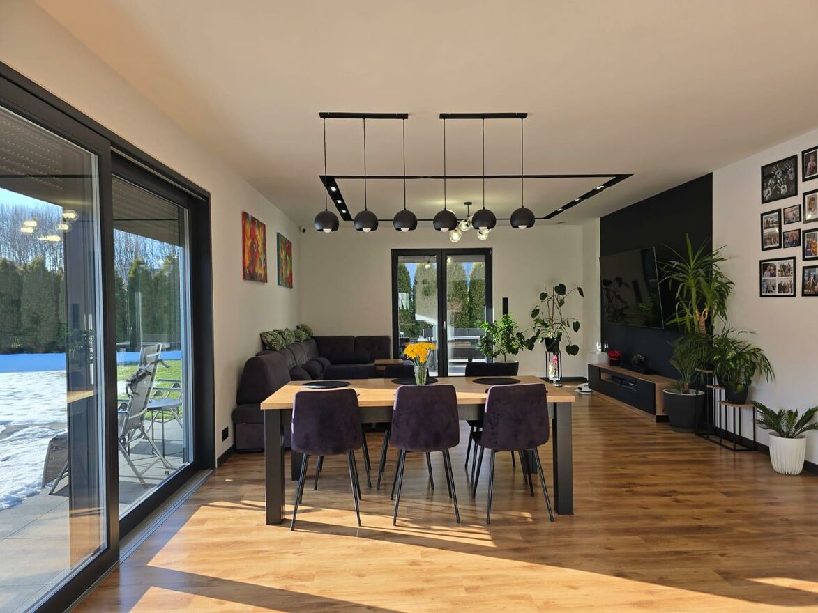 Nieruchomość o powierzchni 172,8 m oferuje przemyślany i wygodny układ pomieszczeń, idealny dla rodziny lub osób ceniących przestrzeń oraz komfort. Nowoczesna bryła budynku, staranne wykończenie oraz zastosowanie inteligentnych rozwiązań technologicznych tworzą spójną, elegancką całość.
