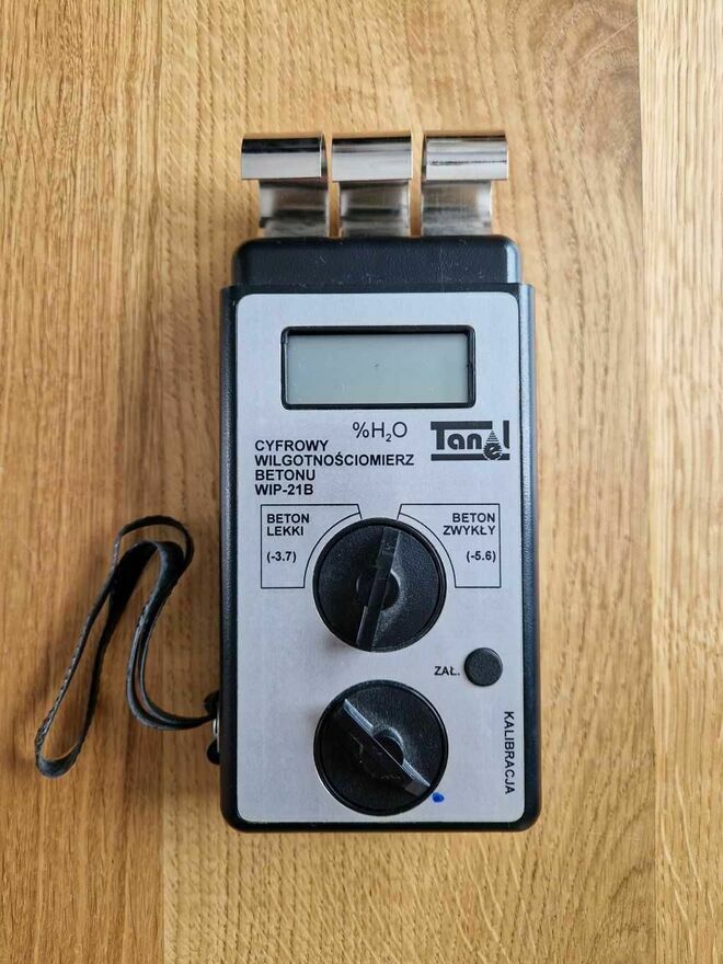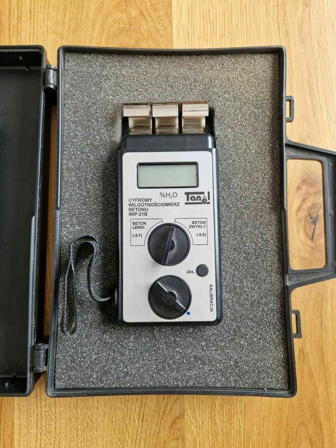 WitamMam do sprzedania cyfrowy wilgotnościomierz betonu firmy TANEL WIP21B. Użyty kilka razy jak nowy. Służy do pomiaru betonów lekkich i zwykłych. Bardzo prosty w obsłudze wystarczy docisnąć elektrody do podłoża, wynik natychmiastowy